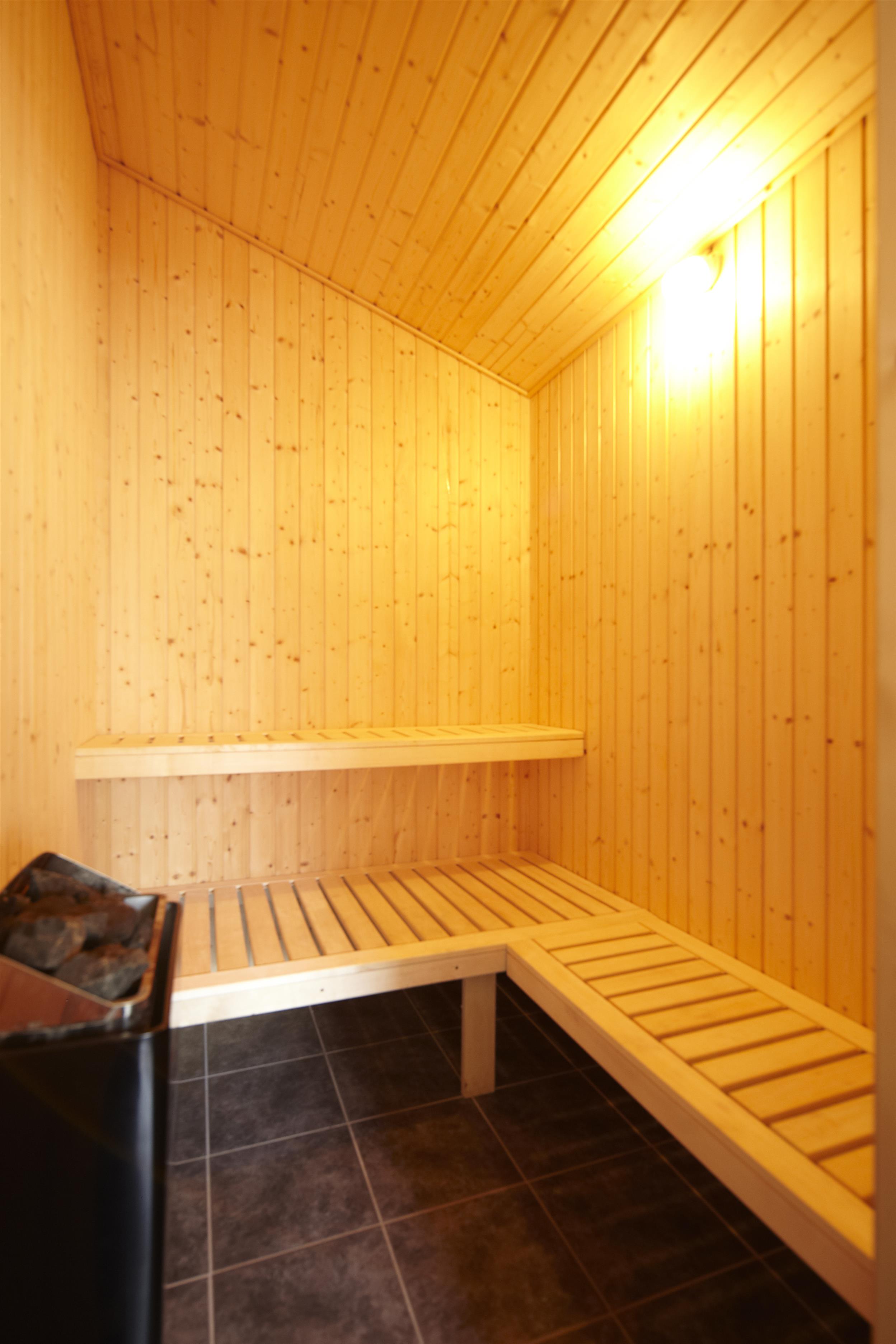 Badeværelse 1: WC, håndvask, bruseniche, spa og sauna