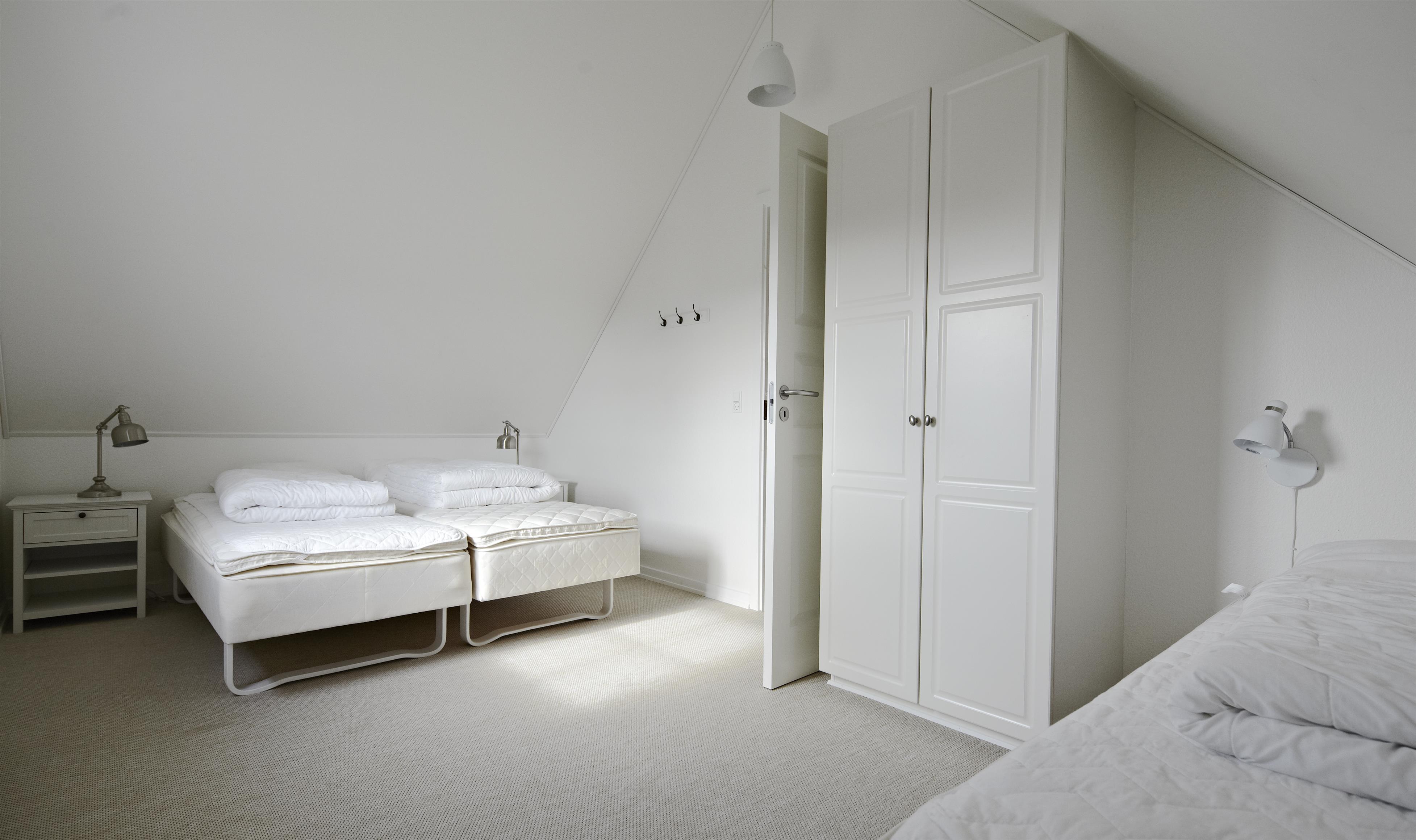Soveværelse: 1 dobbeltseng (kan adskilles til 2 enkelt senge), 1 enkeltseng