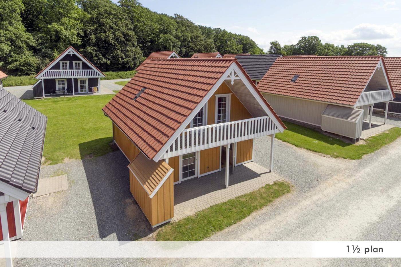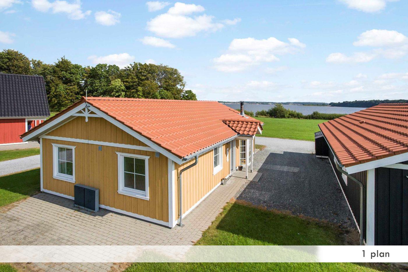 De rummelige ferieboliger i svensk stil er ca. 100 m² og kan lejes både som etplans- og halvandetplanshus. Alle huse har fire soveværelser, sauna, spabad og et fuldt udstyret køkken. Husene har brændeovn, grilludstyr og terrasse/balkon med udsigt til vandet.