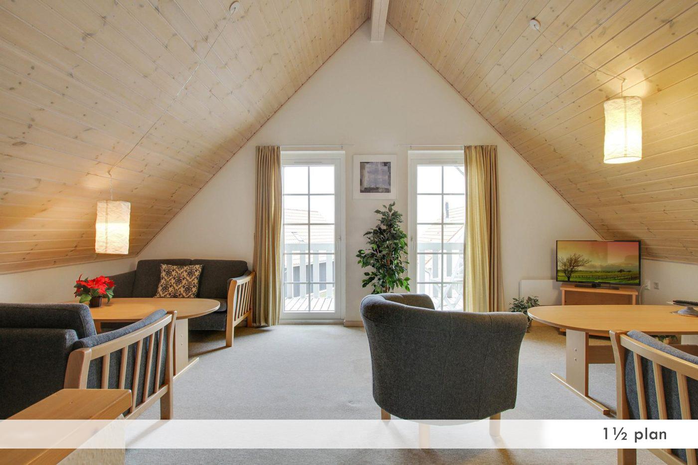I centerbygningen har vi elegante penthouselejligheder på ca. 68 m² til 2–4 personer. Lejlighederne har stor møbleret træterrasse med udsigt til Enjoys marina og det smukke Nybøl Nor.