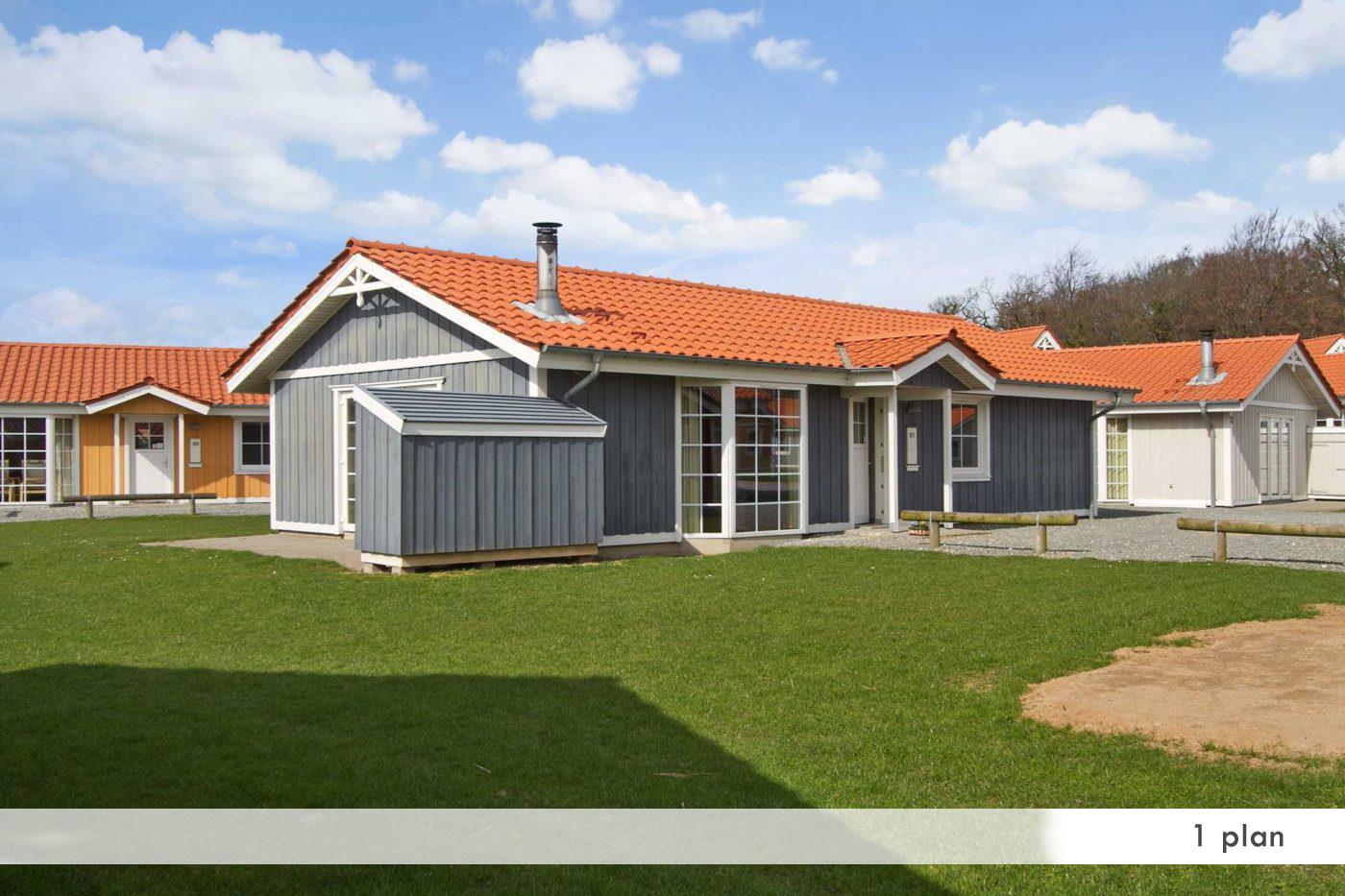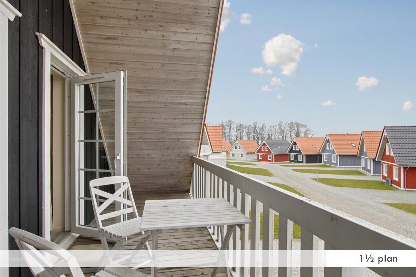 De rummelige ferieboliger i svensk stil er ca. 100 m² og kan lejes både som etplans- og halvandetplanshus. Alle huse har fire soveværelser, sauna, spabad og et fuldt udstyret køkken. Husene har brændeovn, grilludstyr og terrasse/balkon med udsigt til vandet.