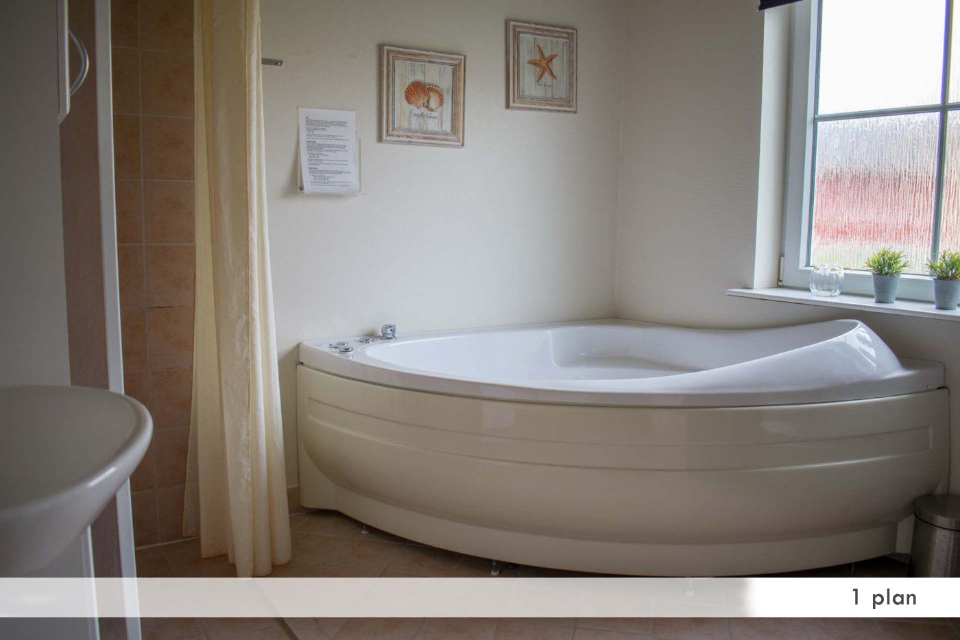 Badeværelse med spa, sauna og gulvvarme. Vaskemaskine, tørretumbler, støvsuger.