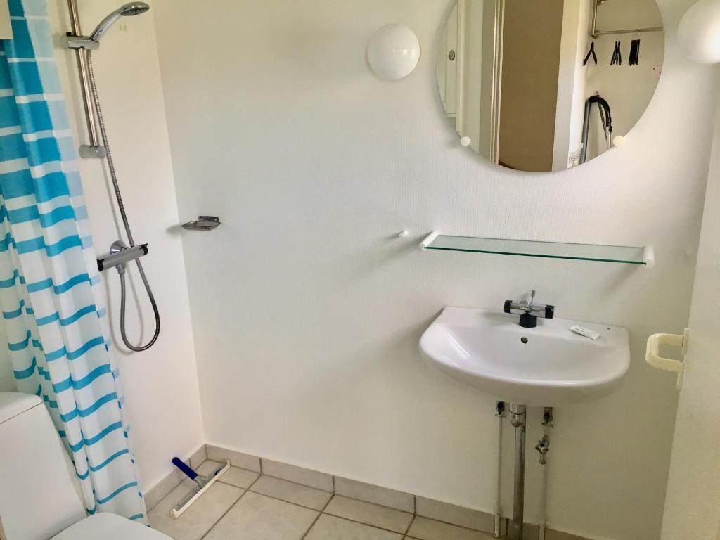 Badeværelse med WC, håndvask, bruseniche