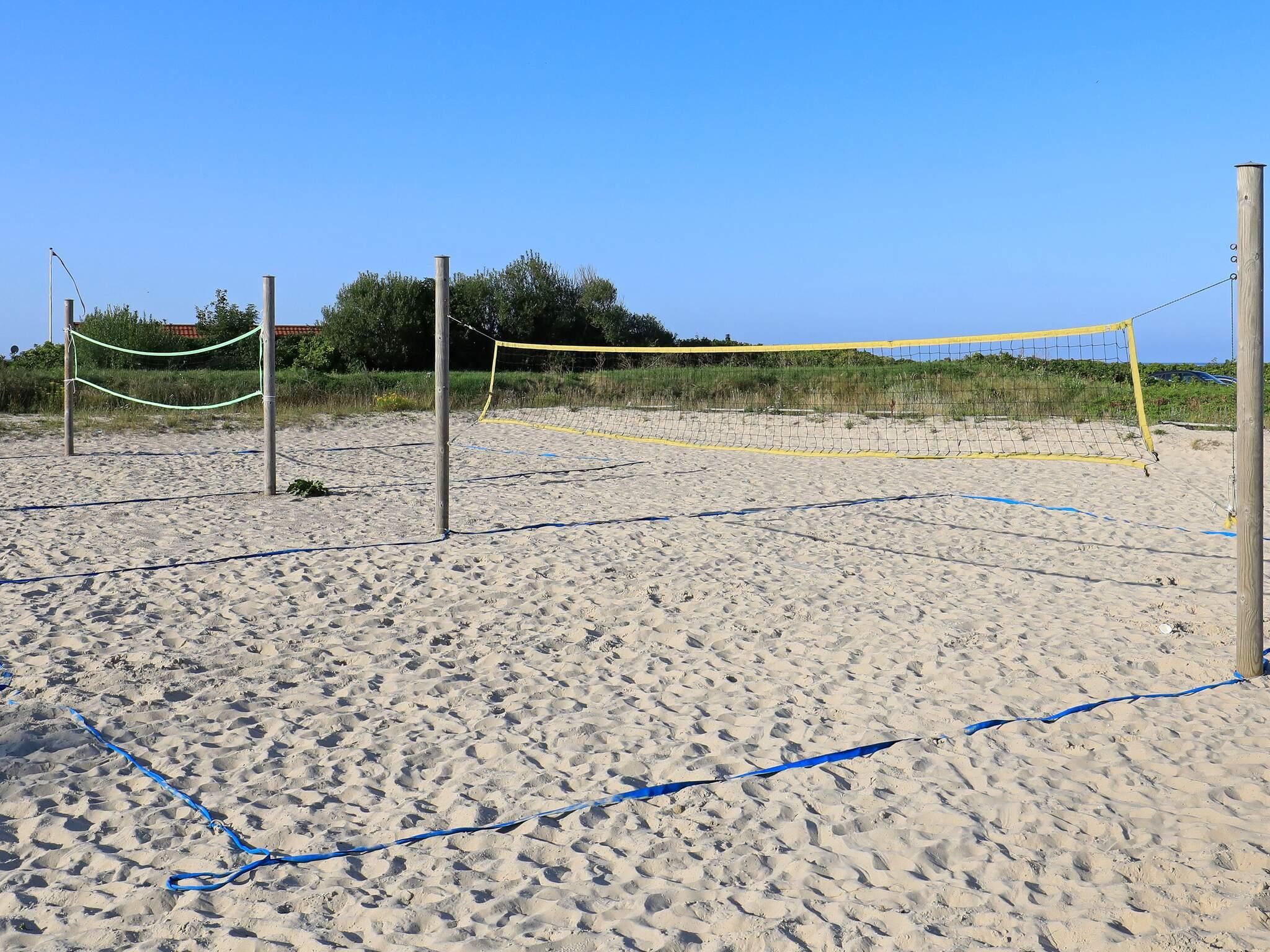 Beach Volleyball baner med internationale mål ved feriecenteret. Der er også en petanquebane samt en badebro.