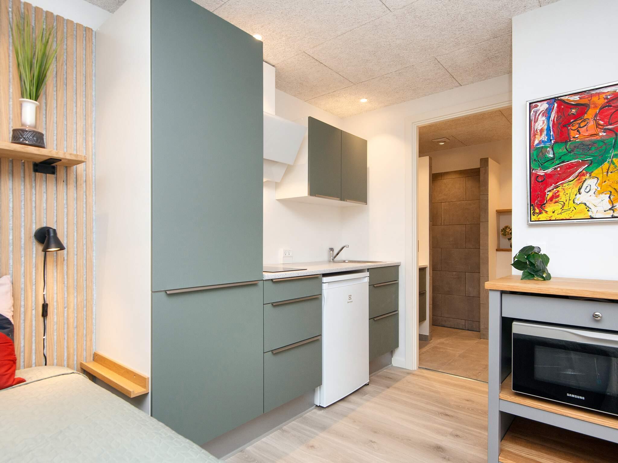 Køkkenafd.: El-komfur, ovn, køleskab m/frostboks, mikroovn, kaffemaskine