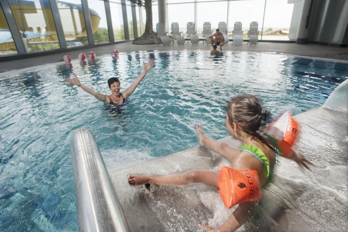 "I Ostsee Resort Damp keder man sig aldrig! Eventyr for børnene og time-out for forældrene - uanset vejr og årstid. For hvis stranden ikke er så indbydende, venter den indendørs forlystelsespark Funhalla, bowling- og sportsbaren Kubbsala, opdagelsespoolen eller KidsClub.