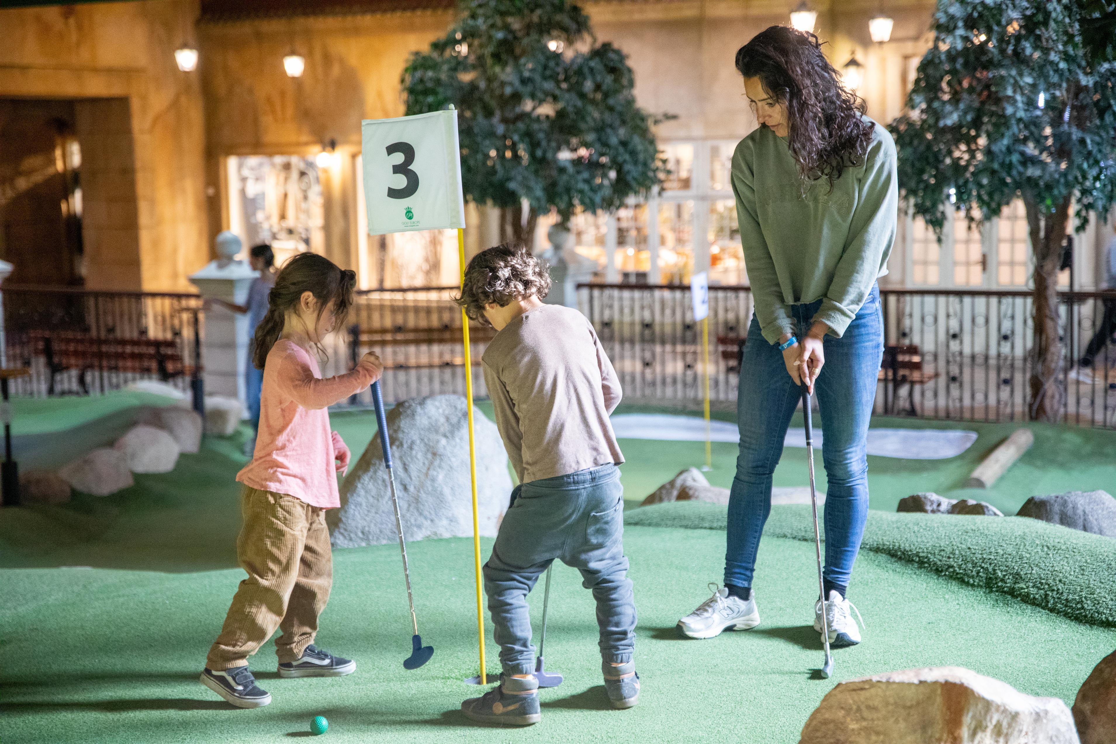 Invitér familien til en dyst på minigolfbanen eller i bowlingcentret.